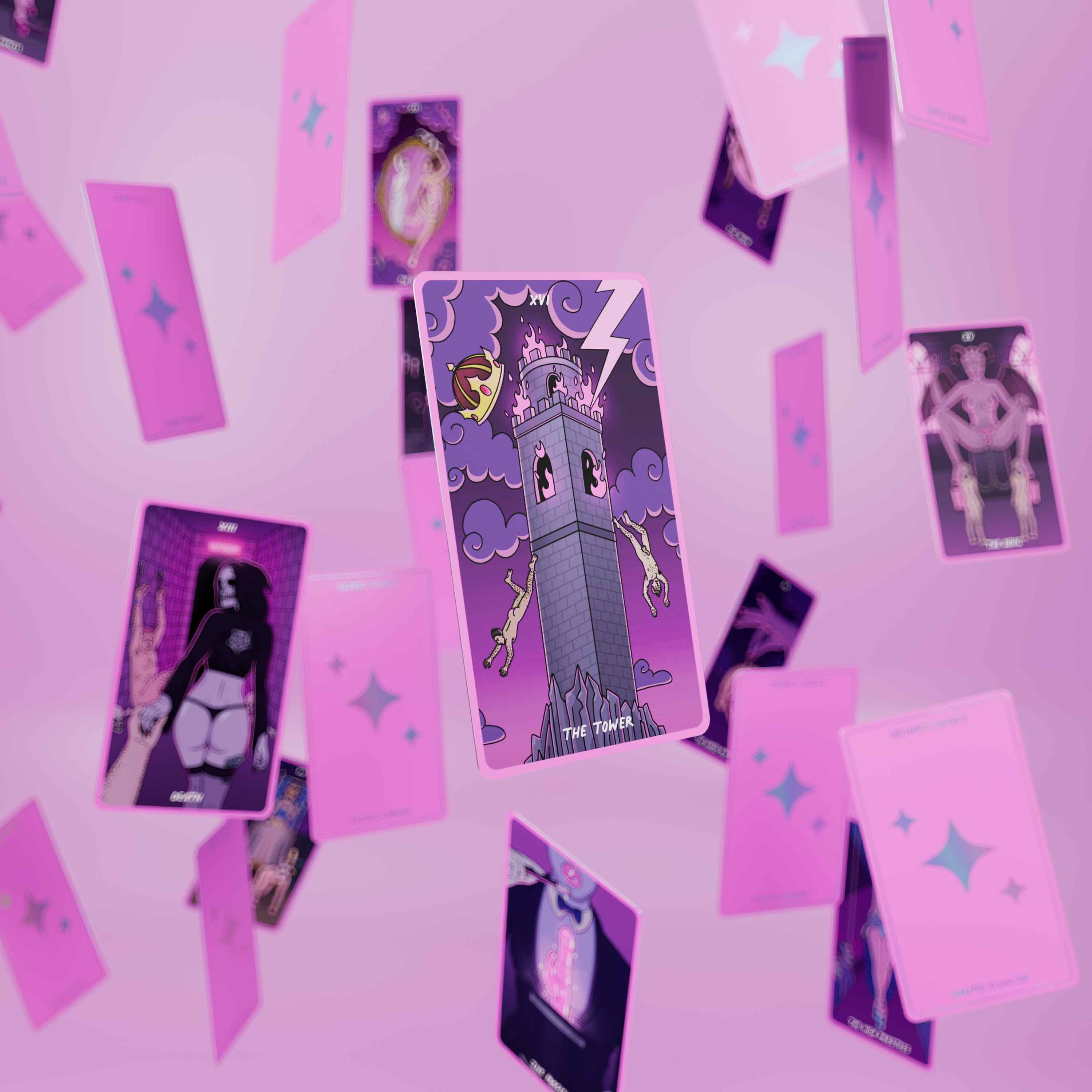 A captivating tarot deck exploring themes of sexuality and femininity. Each unique card features neon pink and holographic details. This deck comes with a beginner-friendly guidebook and is perfect for those seeking a tarot experience that is both personal and intriguing.